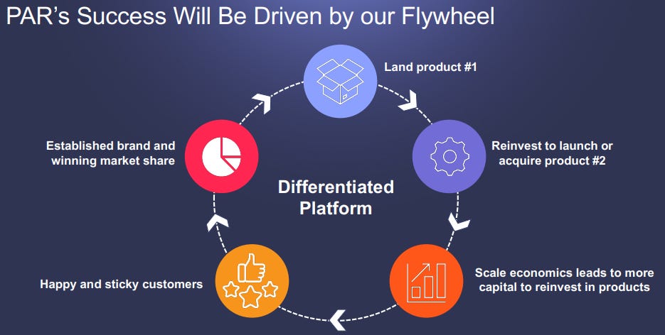 Through internal development and acquisitions, PAR is creating a unified platform operating on a single customer data set, which sets a flywheel in motion and produces multiple advantages: