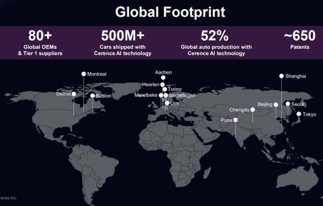 Cerence is the market leader in automotive virtual assistants, with a vast installed base and strong relationships with major OEMs and Tier 1 suppliers.