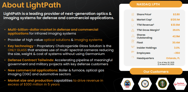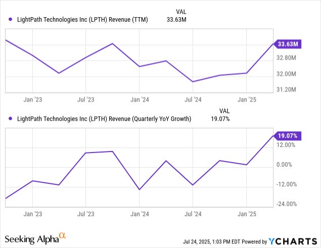 Earlier this month they received an $18M order https://seekingalpha.com/pr/20219330-lightpath-technologies-secures-18_2-million-purchase-order-to-supply-advanced-infrared-camera