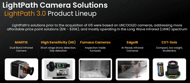 G5 Infrared adds a product line of cooled infrared cameras for long-range imaging to LightPath's portfolio, a significant expansion from LightPath's existing uncooled infrared cameras (like the Mantis) and optical gas imaging technology acquired through Visimid Technologies.