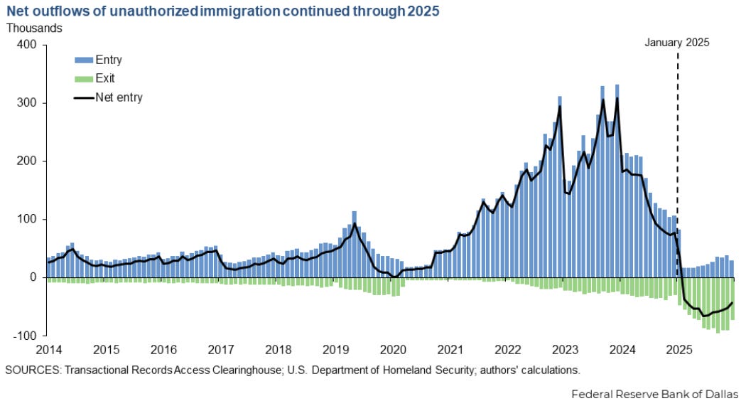 Ordinarily, slowing demand for workers should be a red flag that the unemployment rate is about to rise, the economy is slowing, and recession risks are rising. Job growth below estimated breakeven levels is an even starker warning. But labor supply is also shrinking rapidly. That’s largely due to the Trump administration’s policies to slash net immigration, the longer-term effects of which remain to be seen. Right now, though, they are offsetting the slump in hiring. From the outside, the jobs market may seem stable if labor supply and demand are roughly equal and the unemployment rate is mostly stable. But it’s not a healthy labor market.